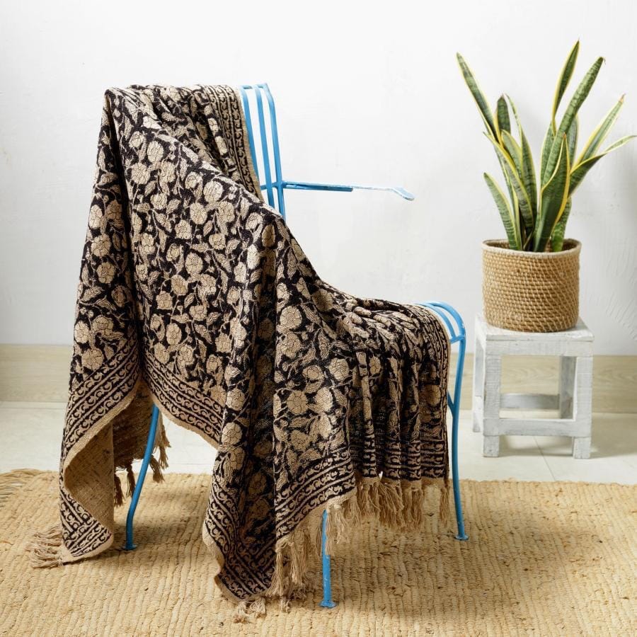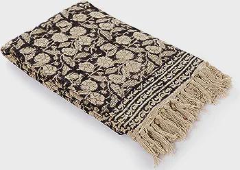 Hand Block Print Cotton Throw Blanket, Handloomed Lightweight Home Decor