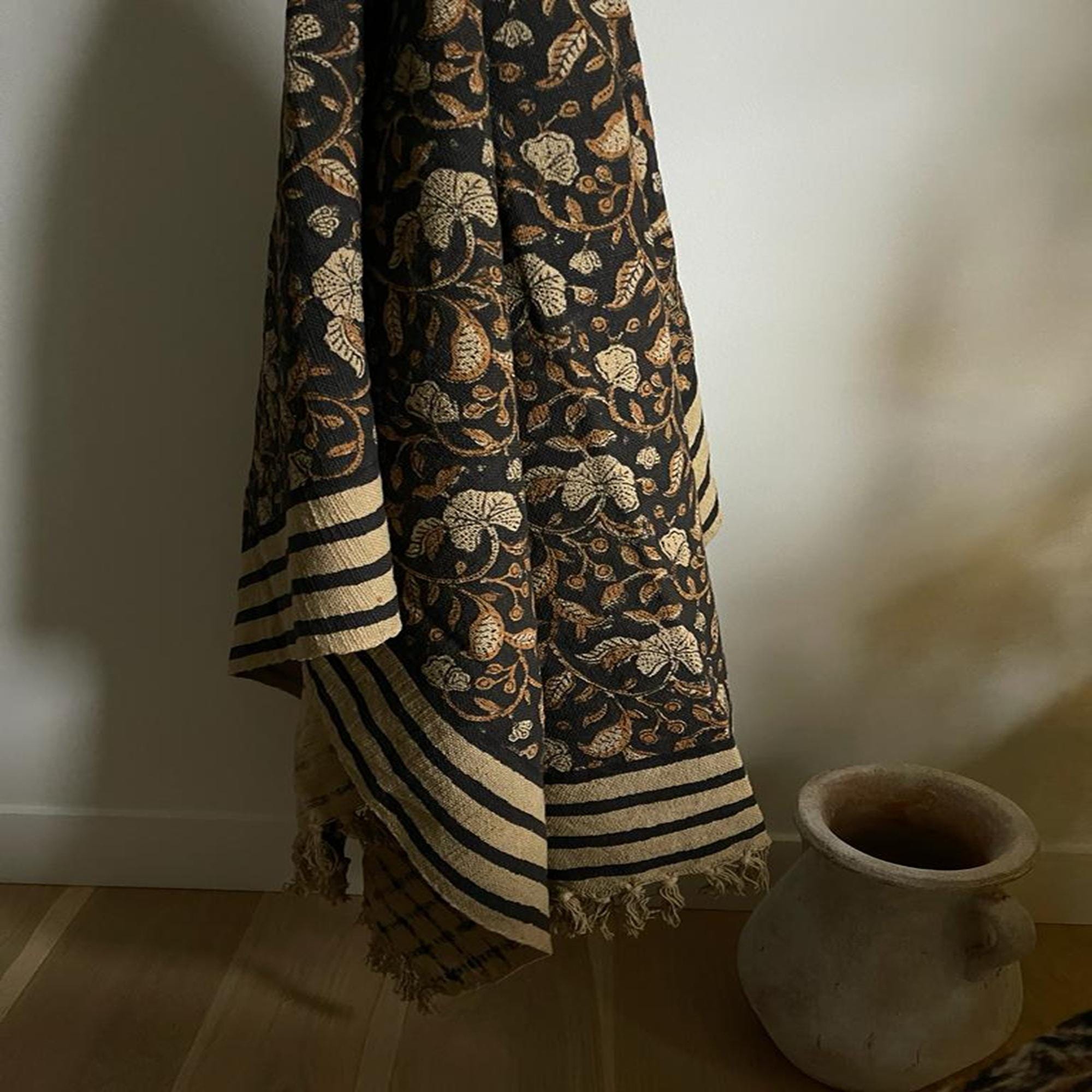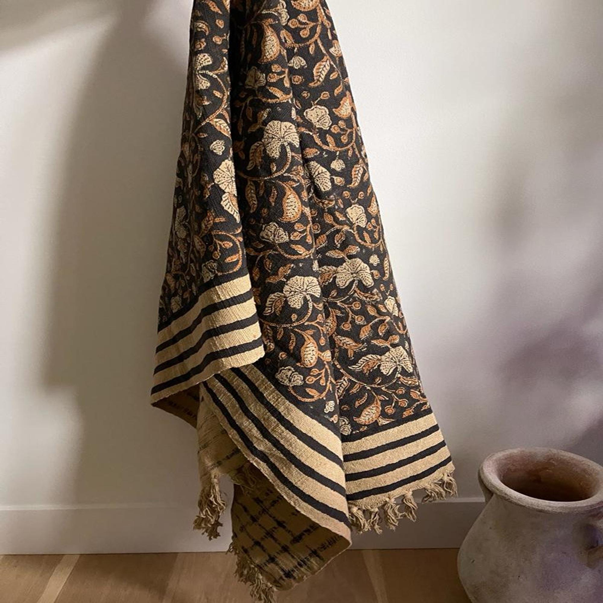 Hand Block Print Cotton Throw Blanket, Tasseled Boho Bedding