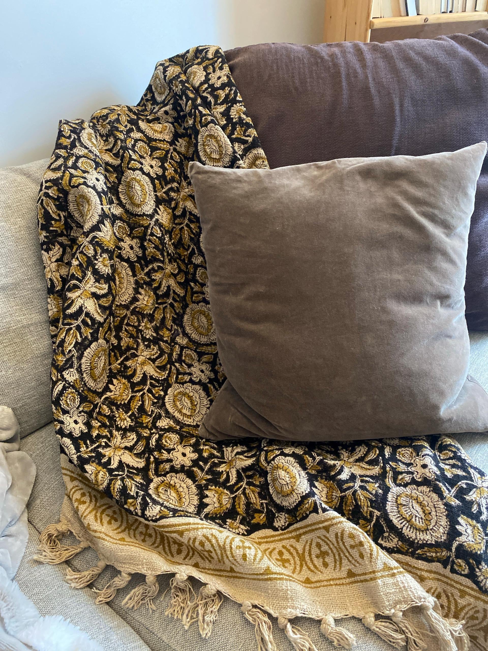 The throw is very pretty, Along the edges however it is darker than the beige and I thinks that’s the way it’s been printed but it makes the throw look dirty. That’s the only thing otherwise it’s lovely and very quick shipping too.