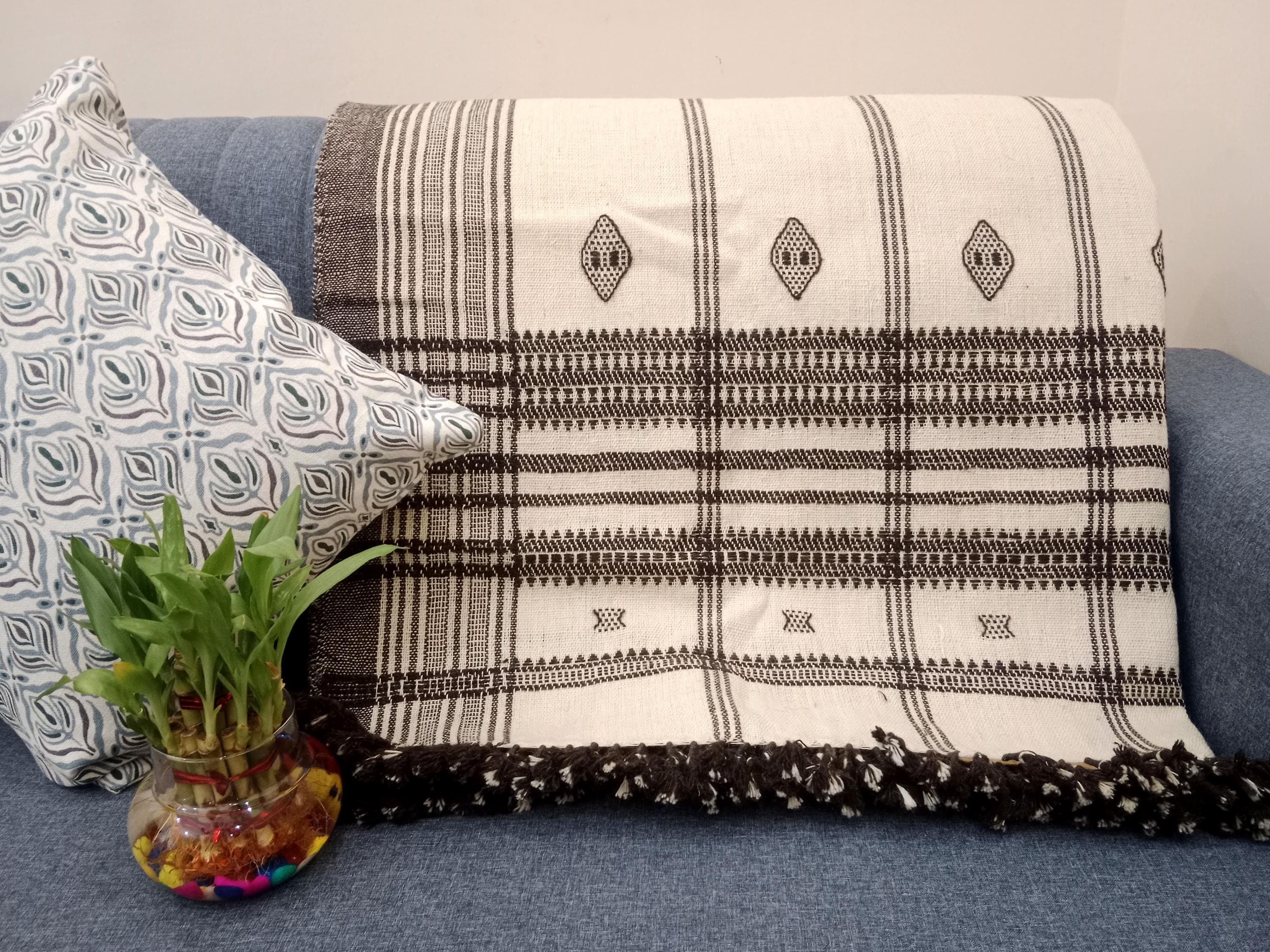 👉Beautiful Handloomed Indian Wool Throw Blanket. 100 % Naturally Dyed Wool featuring a subtle geometric pattern with classic stripes to add detail and texture. The pattern and color will vary slightly due to the handmade nature of the product. Throw Over Your Arm While Siting on Your Couch Or Use it as a decorative Piece at the end of your Bed