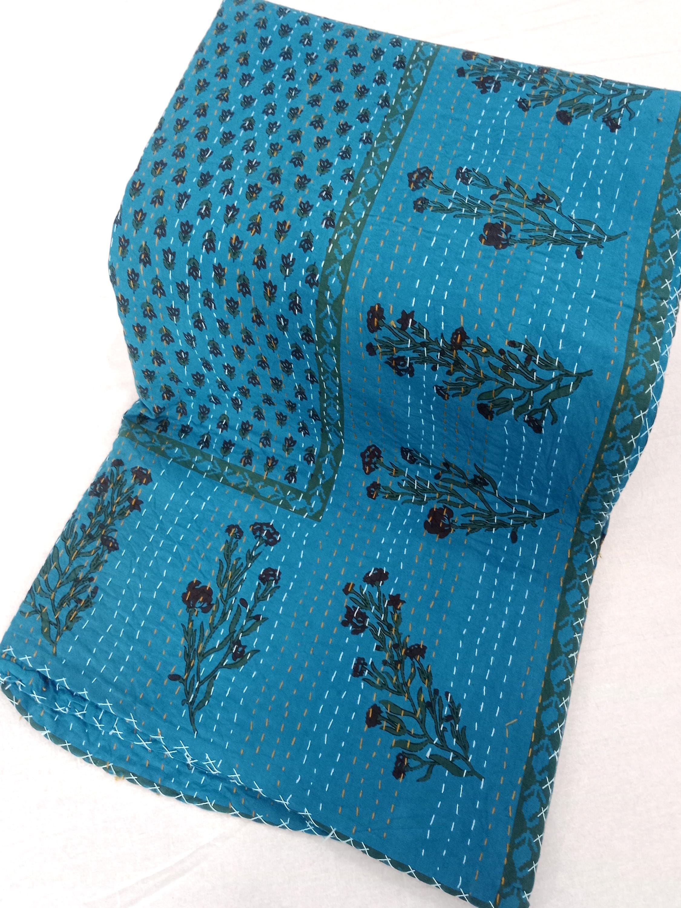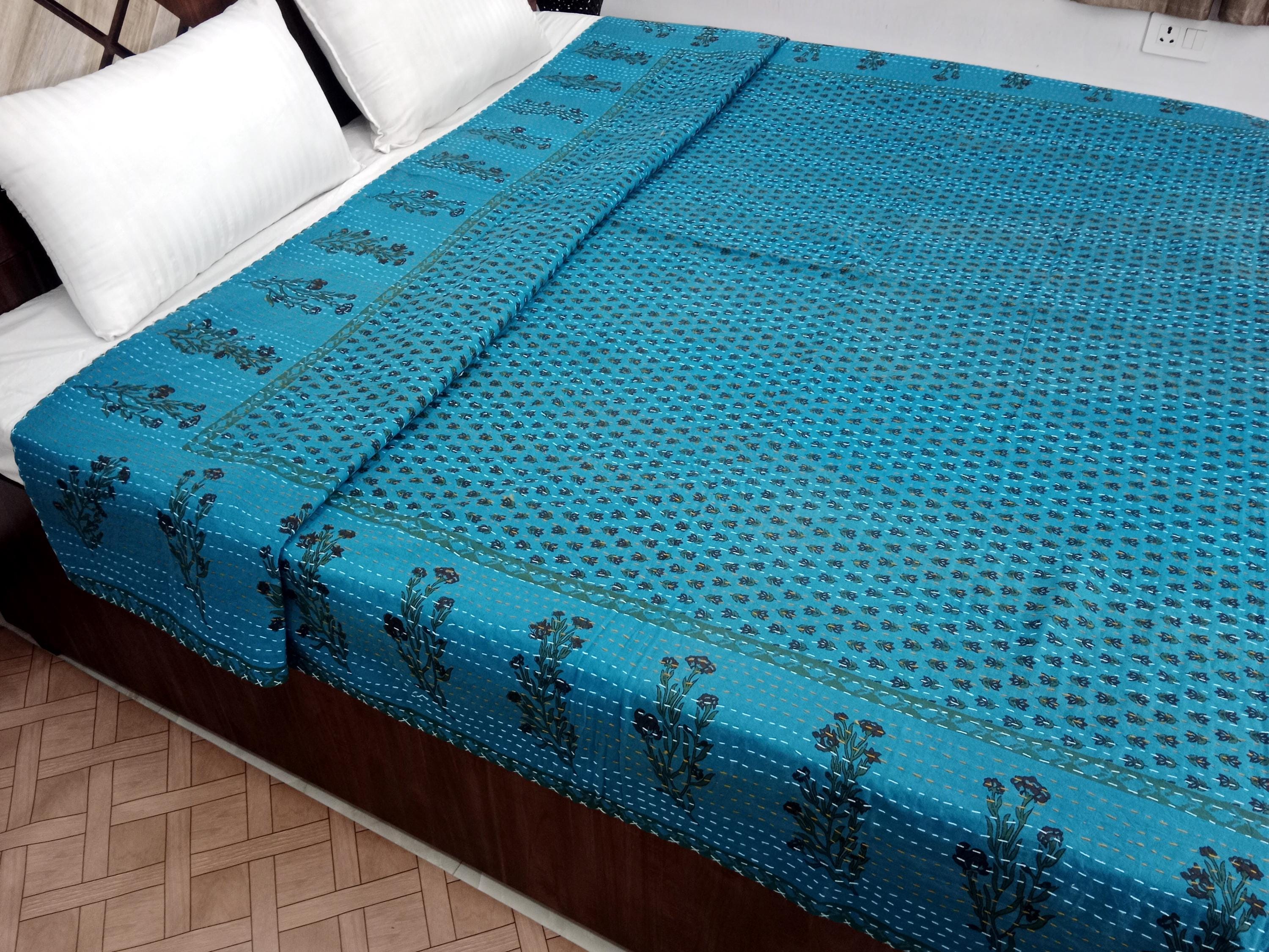 Premium Floral Handmade Kantha Bedcover Bedding Quilt Hand Block Floral Design Hand block Floral Print Kantha Quilt Floral Block print quilt