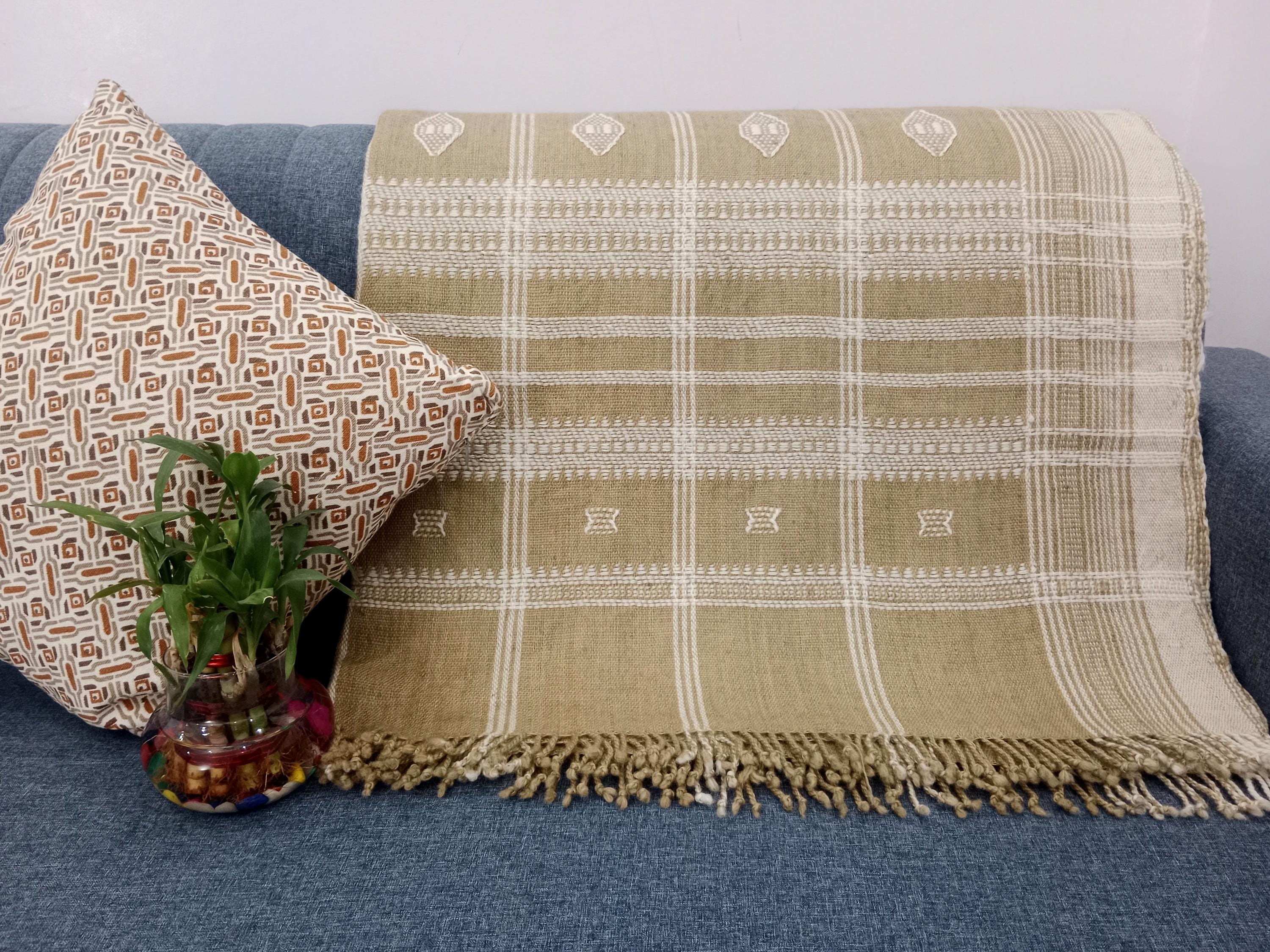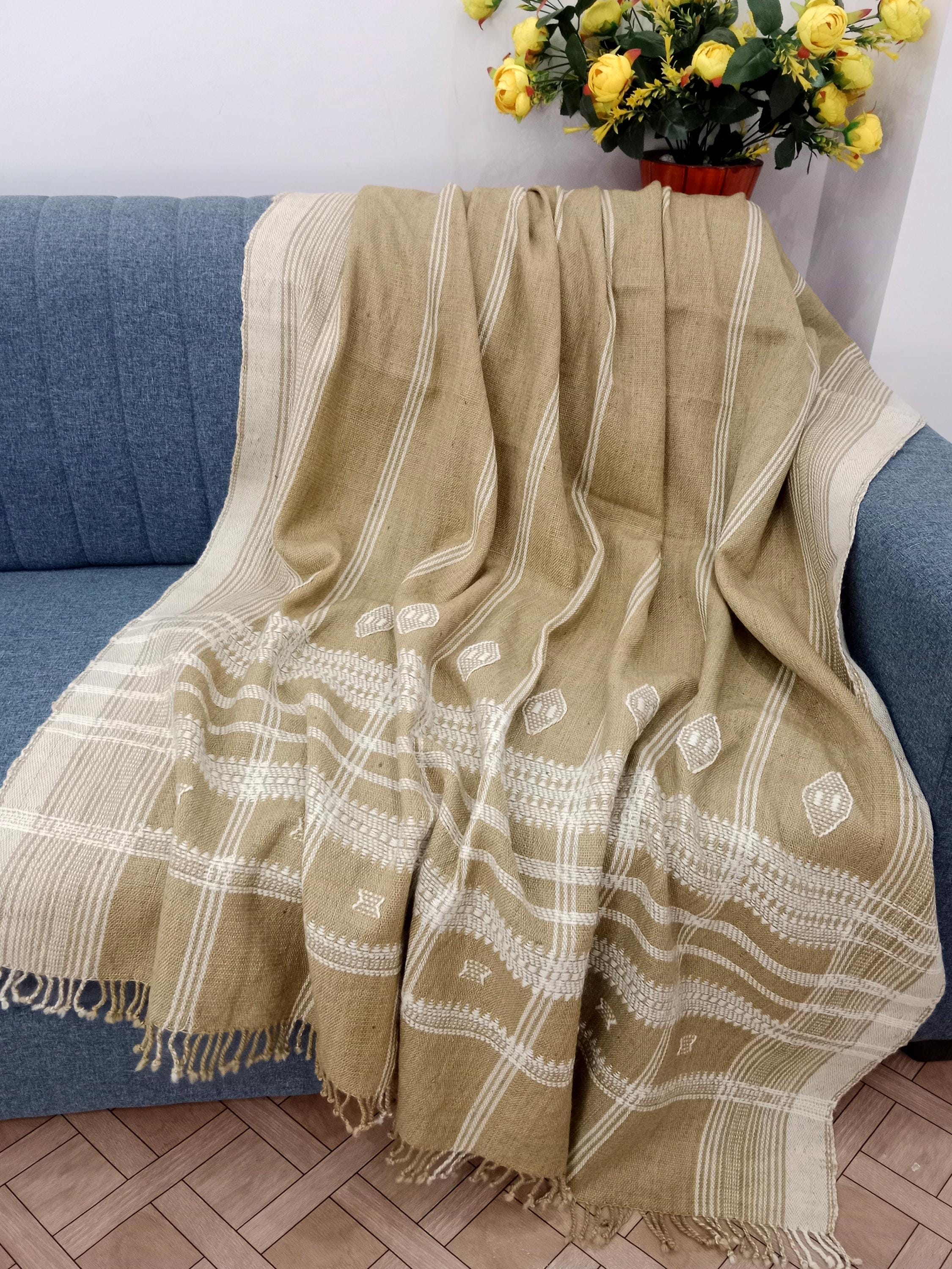 👉Beautiful Handloomed Indian Wool Throw Blanket. 100 % Naturally Dyed Wool featuring a subtle geometric pattern with classic stripes to add detail and texture. The pattern and color will vary slightly due to the handmade nature of the product. Throw Over Your Arm While Siting on Your Couch Or Use it as a decorative Piece at the end of your Bed
