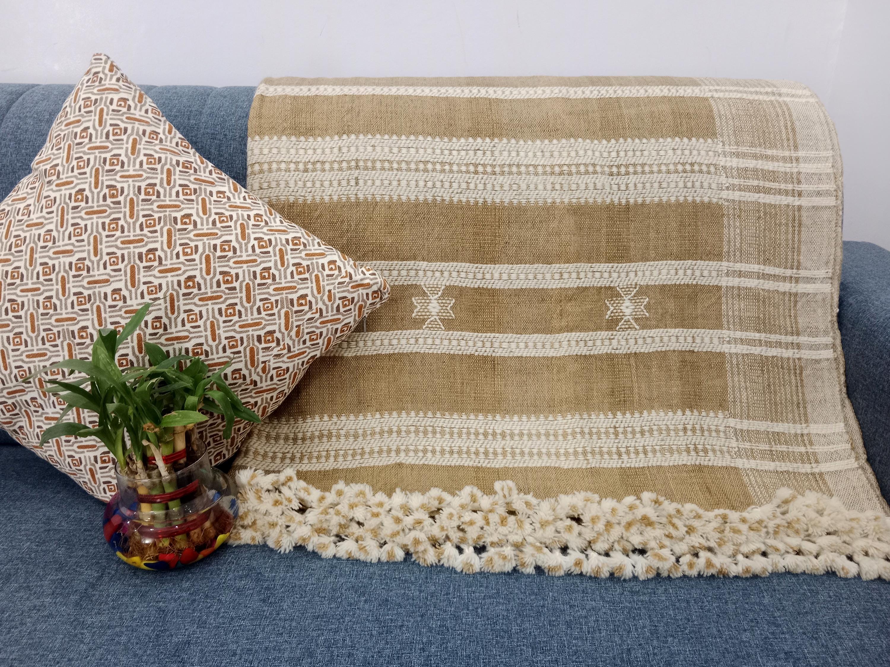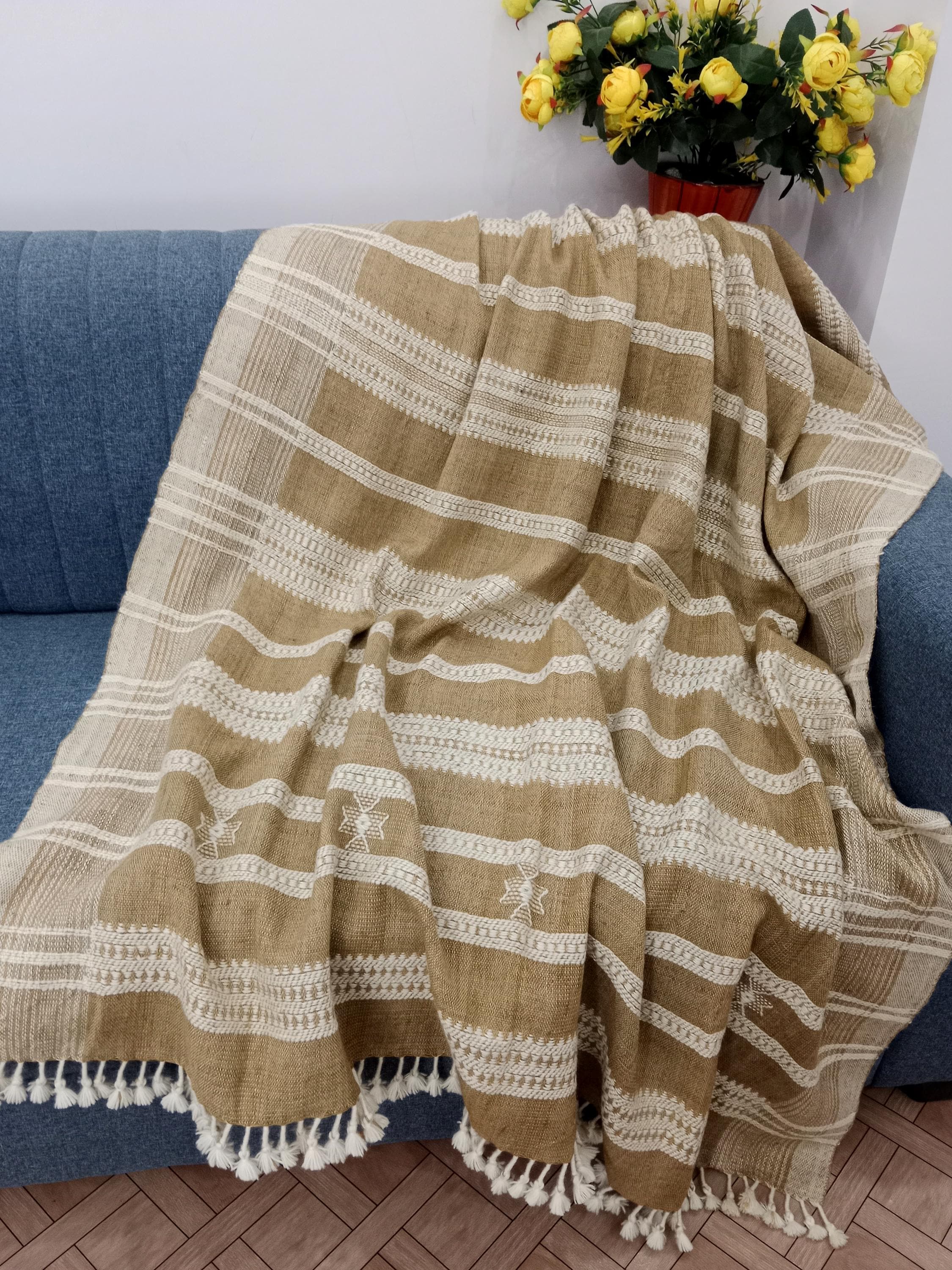 👉Beautiful Handloomed Indian Wool Throw Blanket. 100 % Naturally Dyed Wool featuring a subtle geometric pattern with classic stripes to add detail and texture. The pattern and color will vary slightly due to the handmade nature of the product. Throw Over Your Arm While Siting on Your Couch Or Use it as a decorative Piece at the end of your Bed