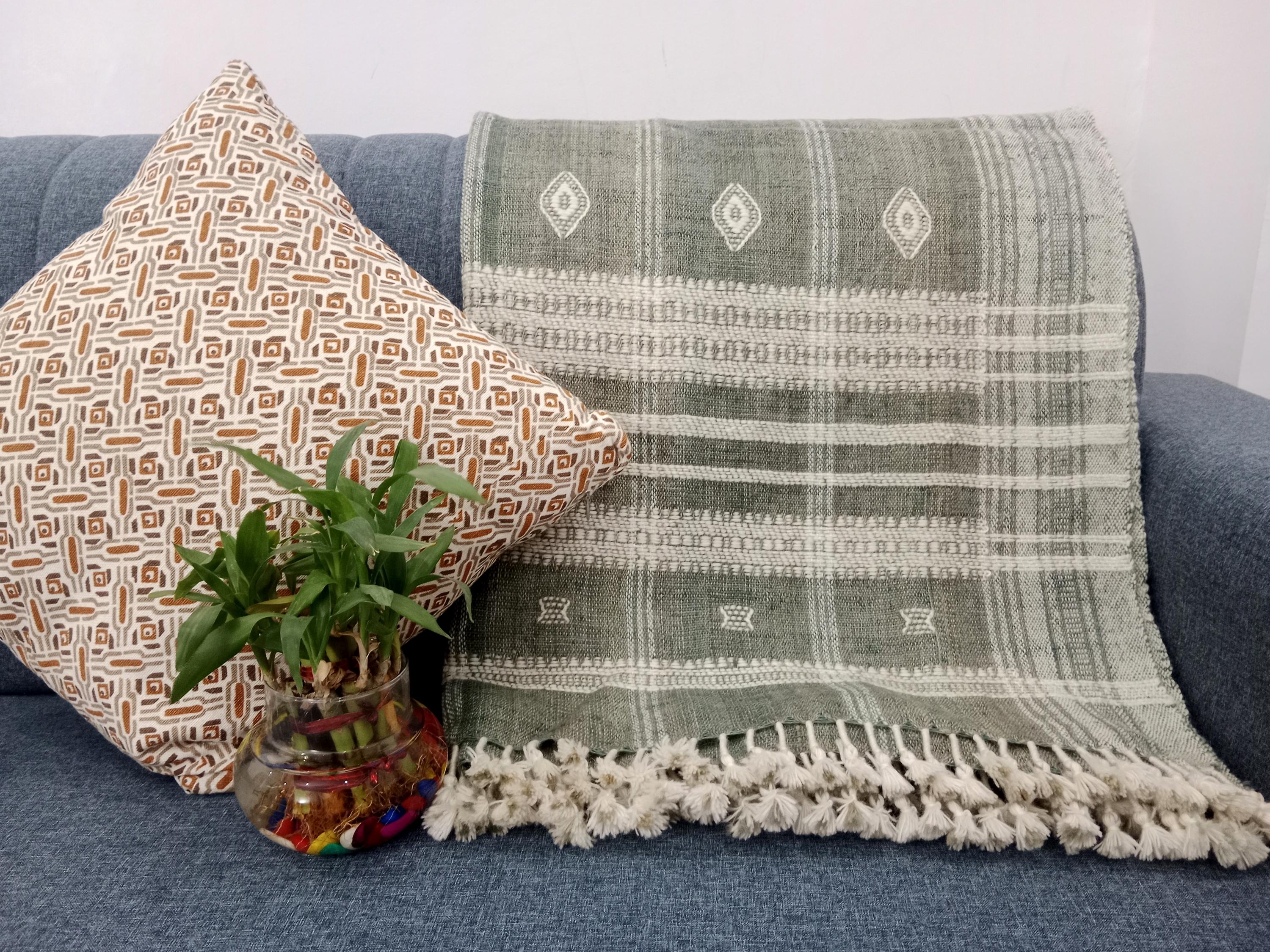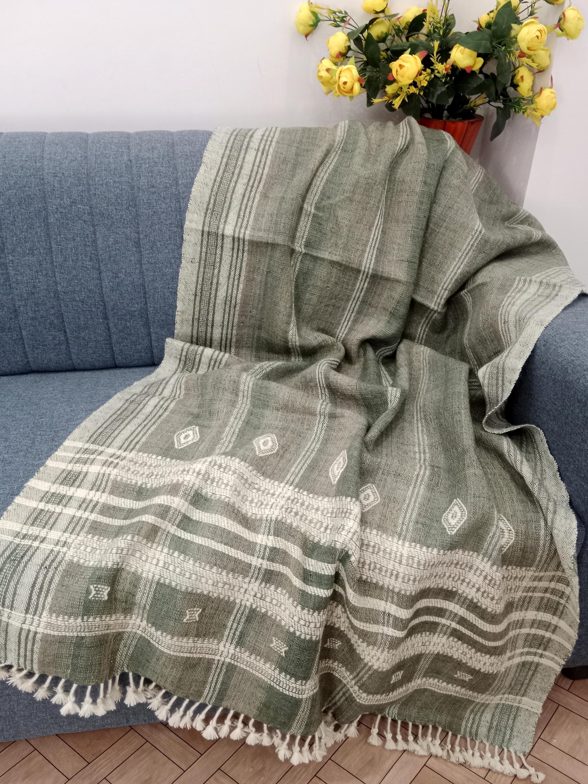 👉Beautiful Handloomed Indian Wool Throw Blanket. 100 % Naturally Dyed Wool featuring a subtle geometric pattern with classic stripes to add detail and texture. The pattern and color will vary slightly due to the handmade nature of the product. Throw Over Your Arm While Siting on Your Couch Or Use it as a decorative Piece at the end of your Bed