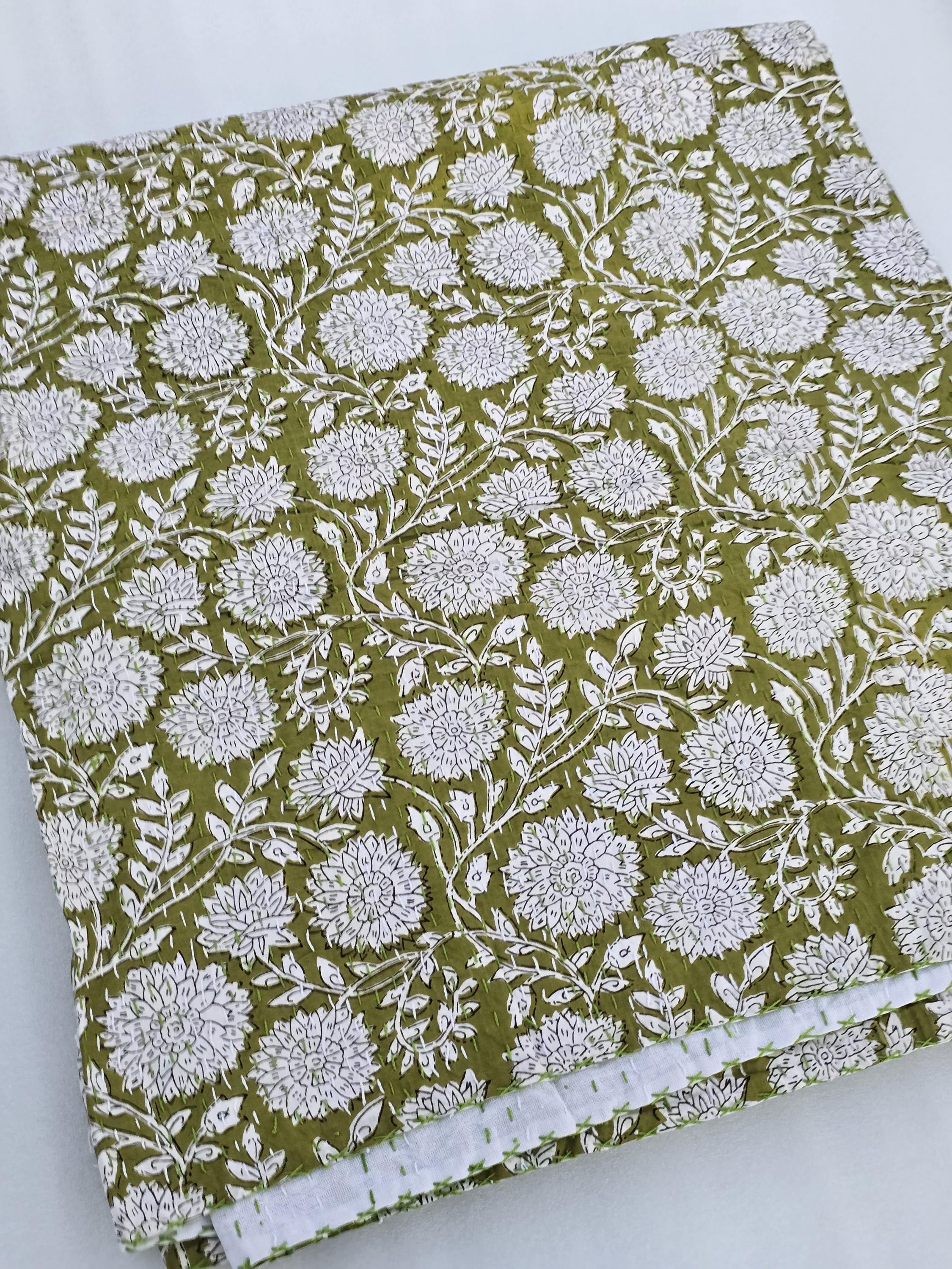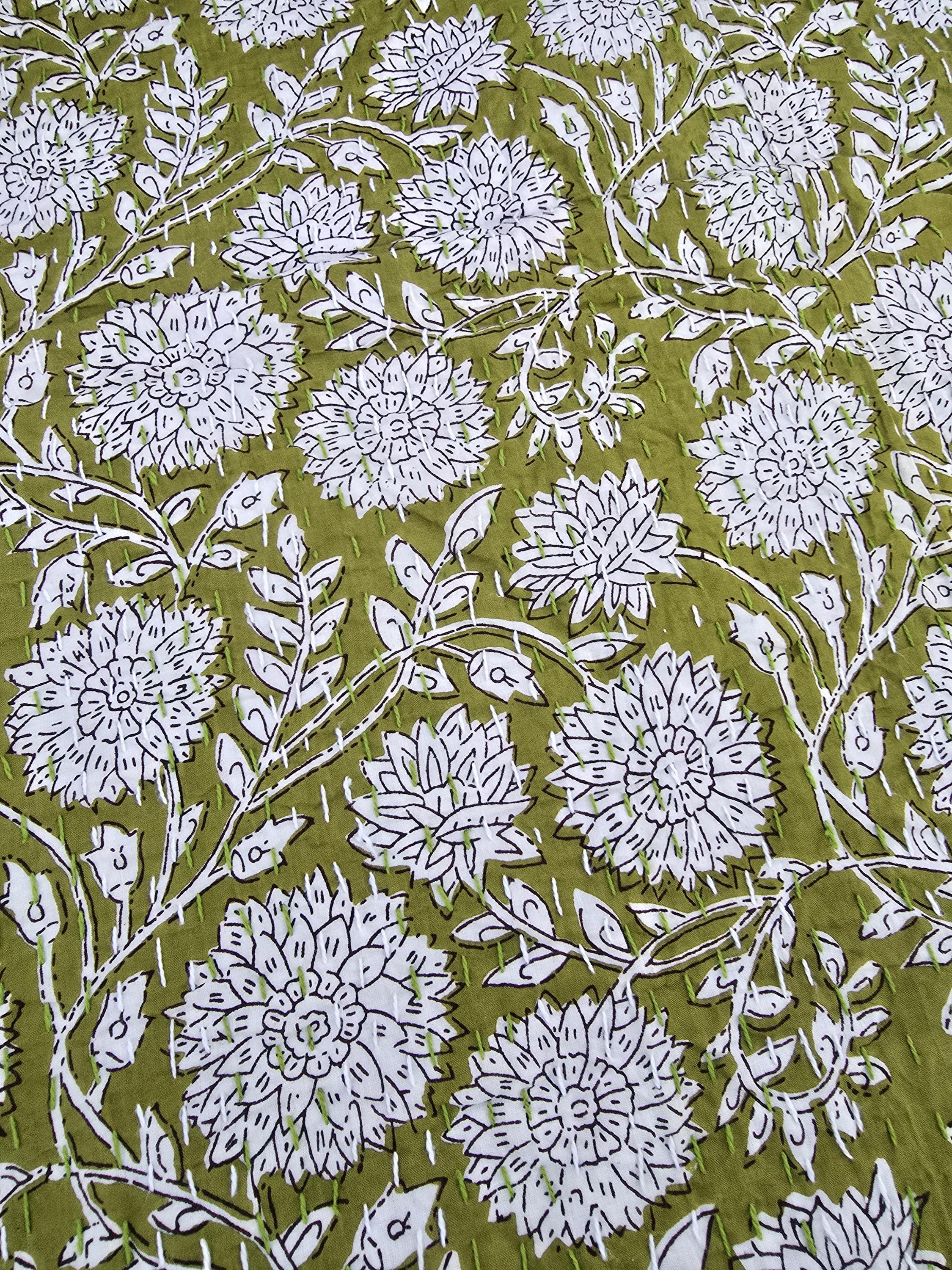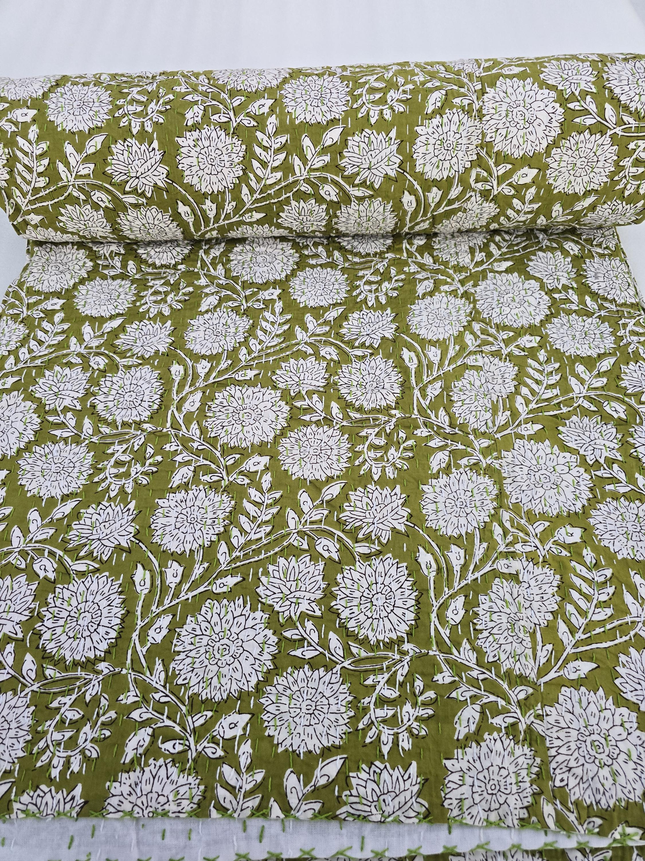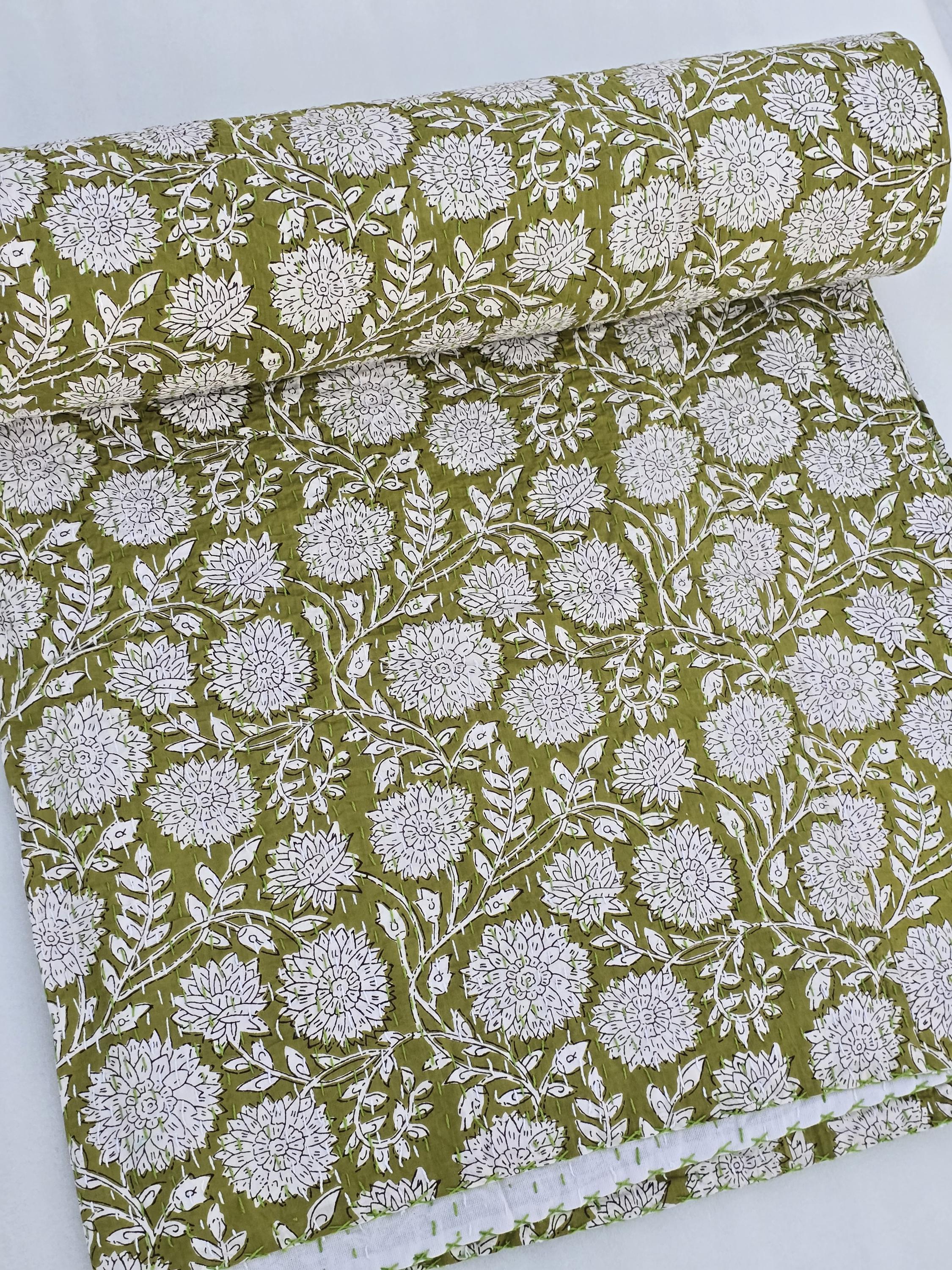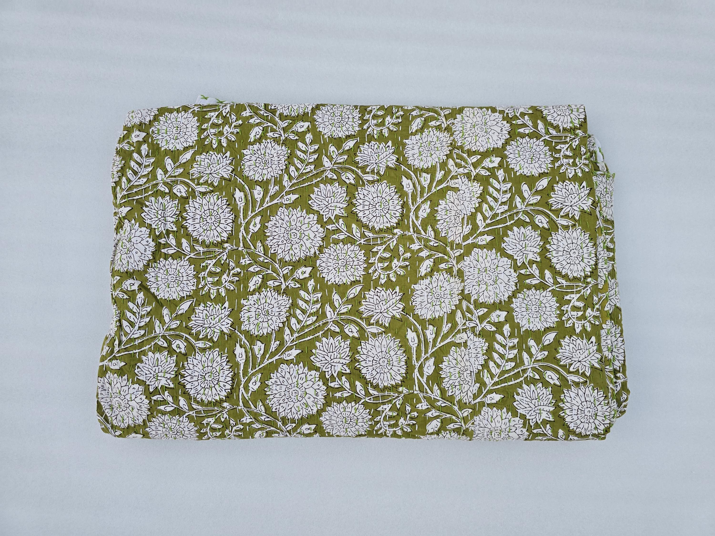Premium Handmade Kantha Bedcover, Hand Block Floral Print Quilt Lightweight Kantha Throw, Pure Cotton Bedcover, Housewarming Gift