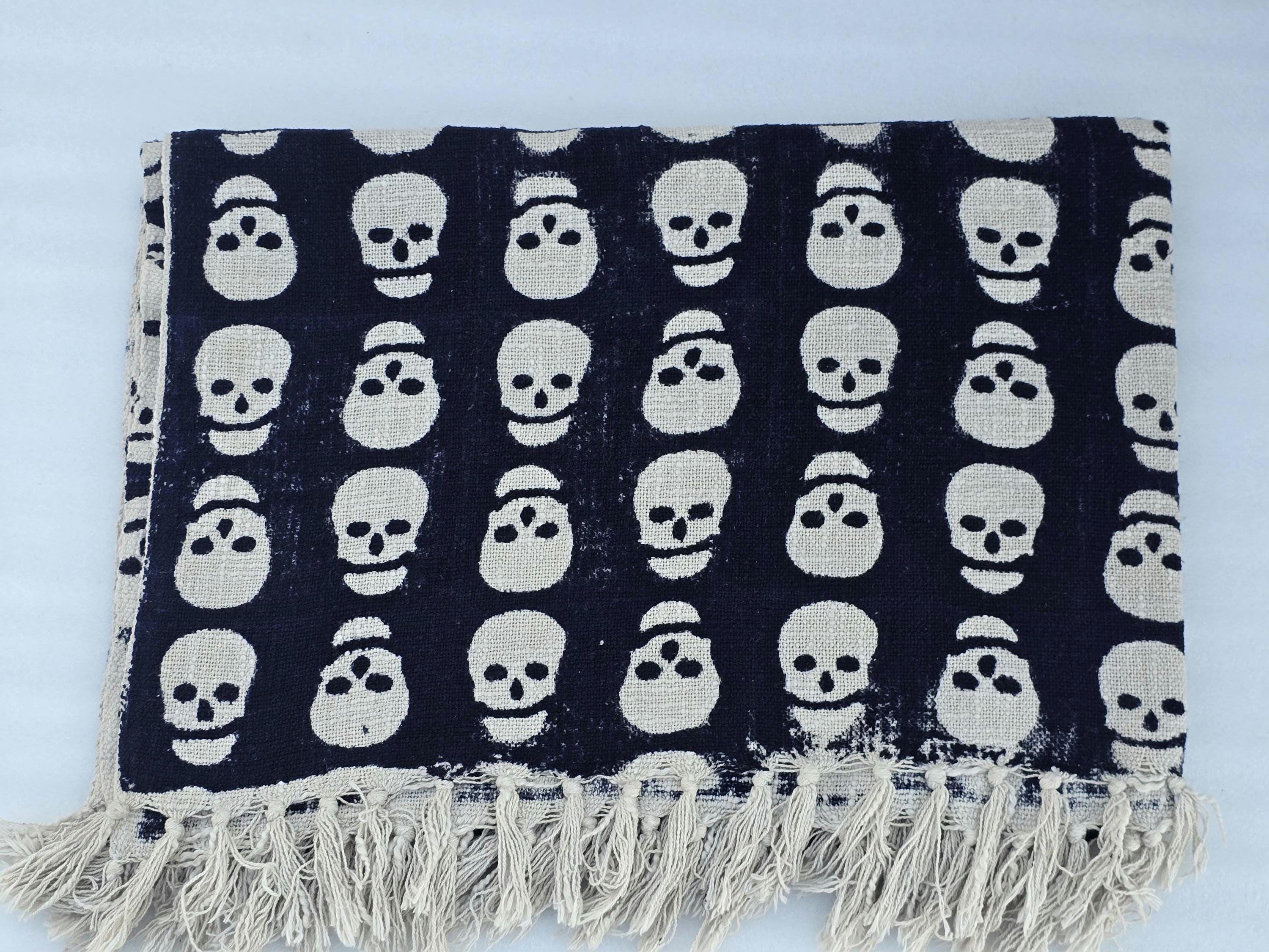 Halloween Throw Sofa Handmade Throw Hand Block Print Soft Cotton Throw Blanket Sofa Room Décor Tassels Hand Loomed Lightweight Decorati