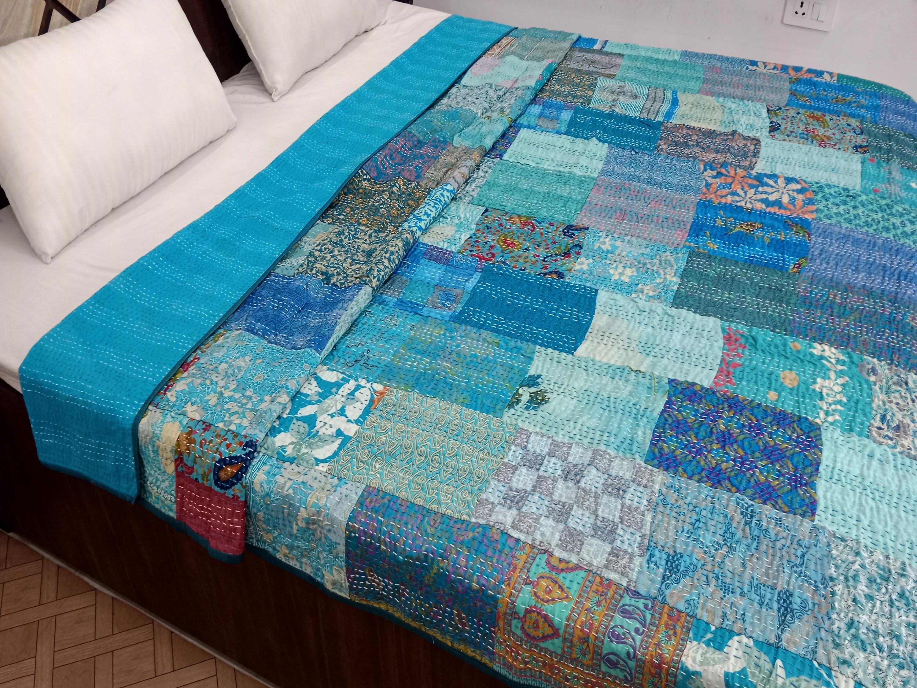Patchwork Floral Kantha Bedding Floral Print Kantha Throw Queen Quilt Cotton Light Weight Winter Summer Vintage Blanket Bedding Bedspread