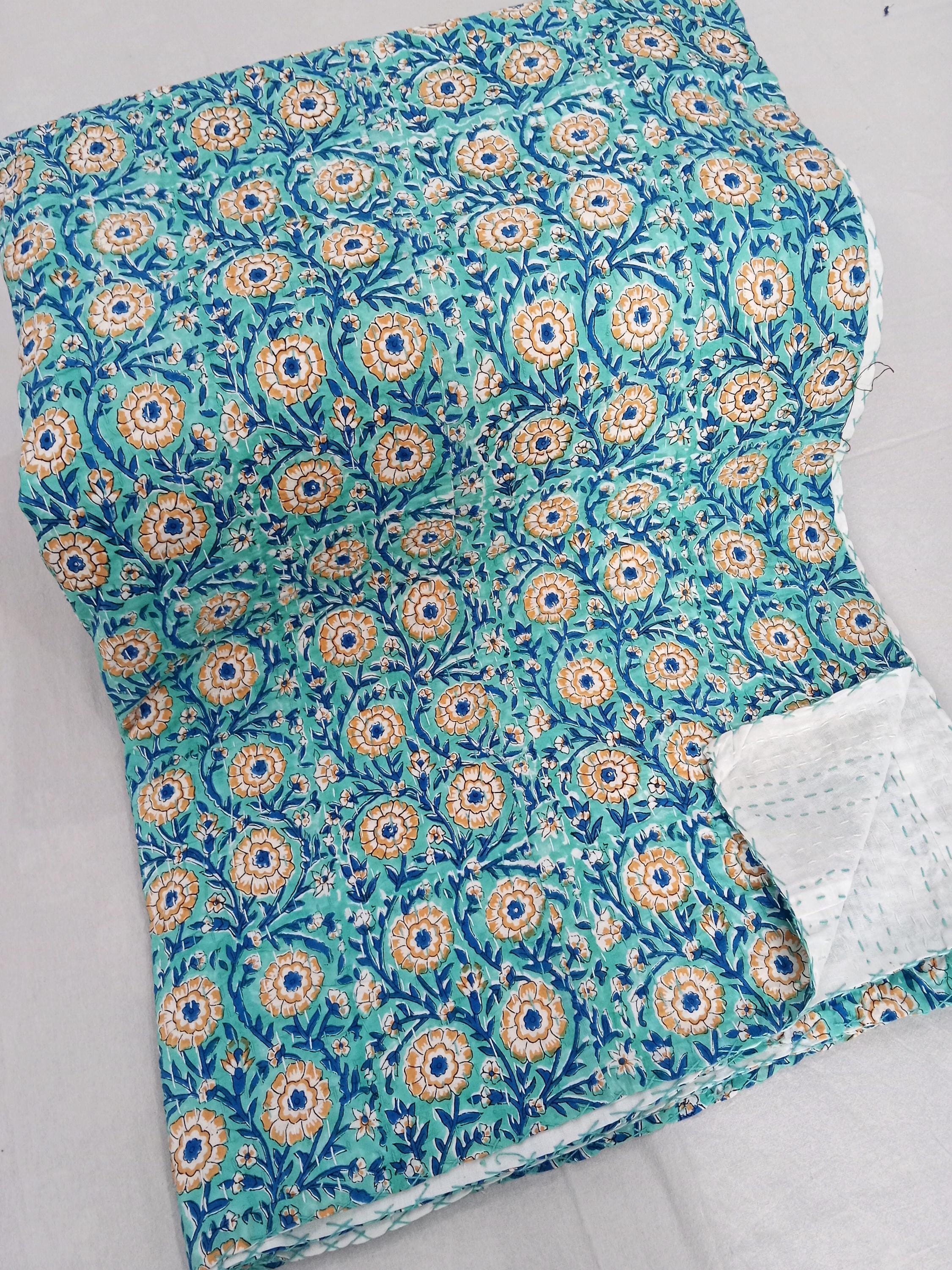 Floral Kantha Quilt Throw bedspread Indian Quilt, Gift for Full Quilt Quilt Cotton, Handmade Kantha Quilt Christmas Gifts