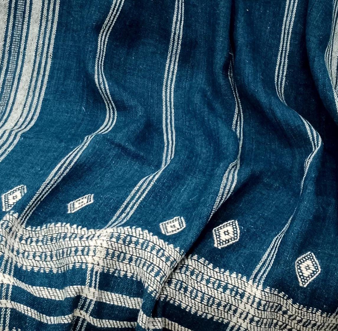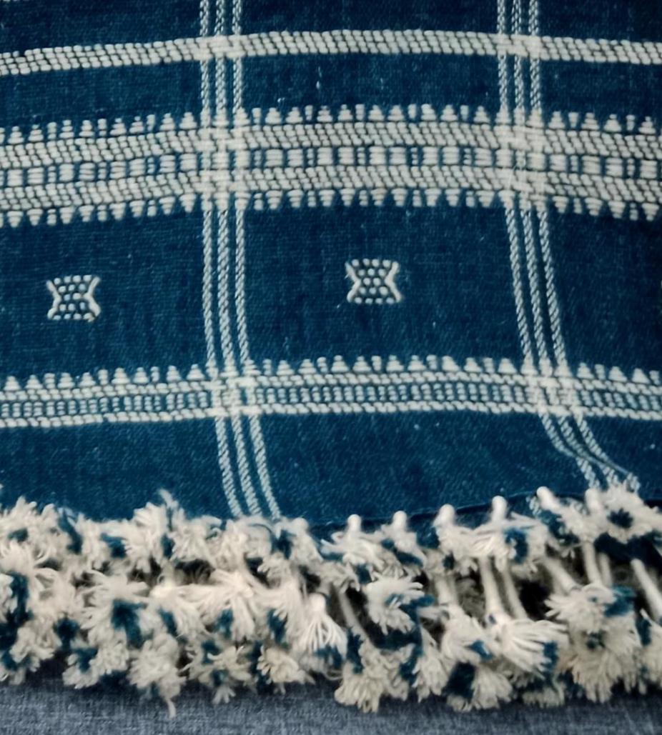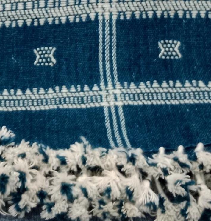 👉The wool is hand-spun, dyed and woven on pit-looms, to create earthy but sophisticated scarves, shawls, blankets and carpets. Products are often subtly embellished with touches of hand-embroidery or mirror-work. The same traditional motifs are still embroidered on the shawl that are characteristic of the community.