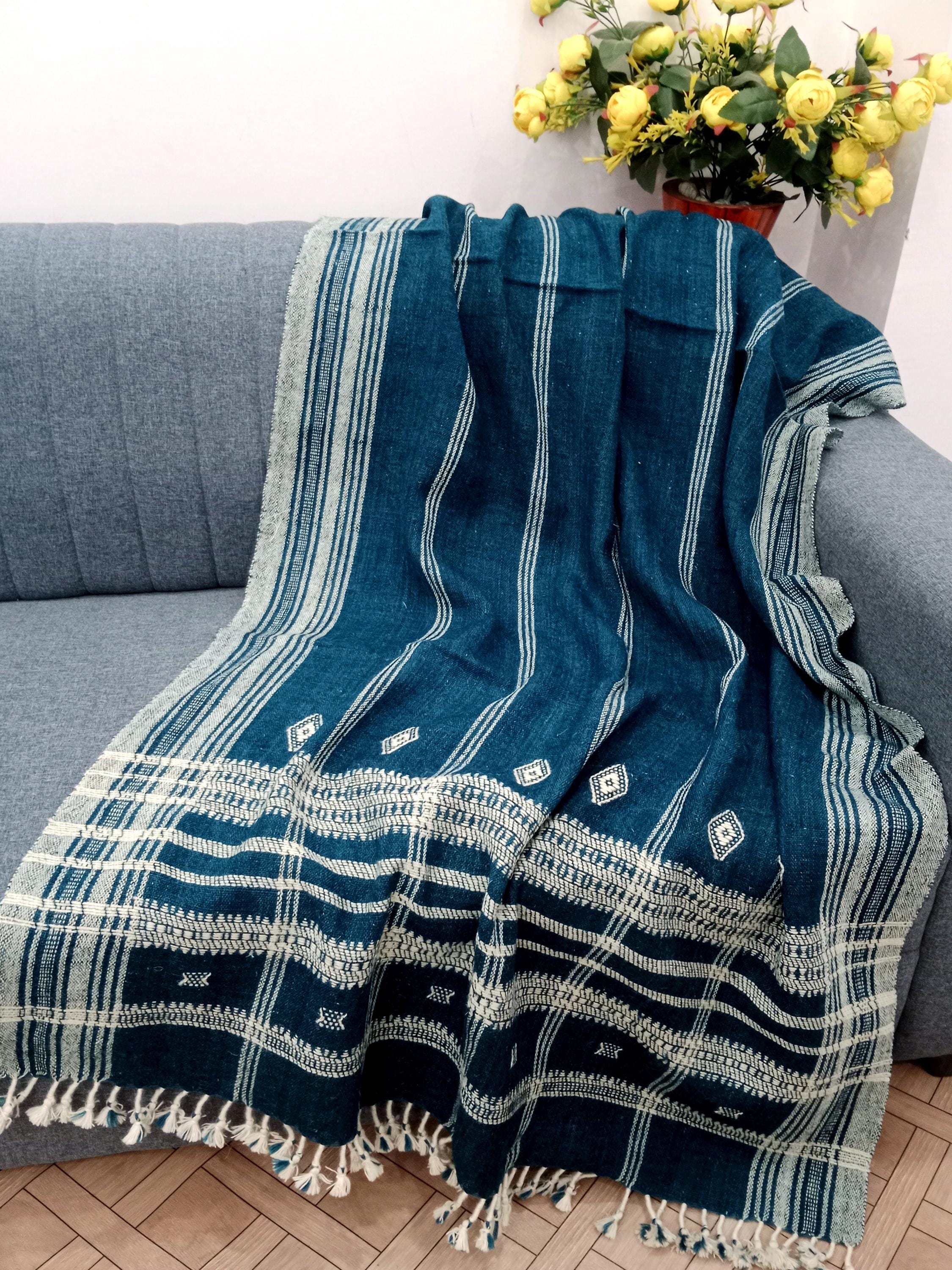 👉Beautiful Handloomed Indian Wool Throw Blanket. 100 % Naturally Dyed Wool featuring a subtle geometric pattern with classic stripes to add detail and texture. The pattern and color will vary slightly due to the handmade nature of the product. Throw Over Your Arm While Siting on Your Couch Or Use it as a decorative Piece at the end of your Bed