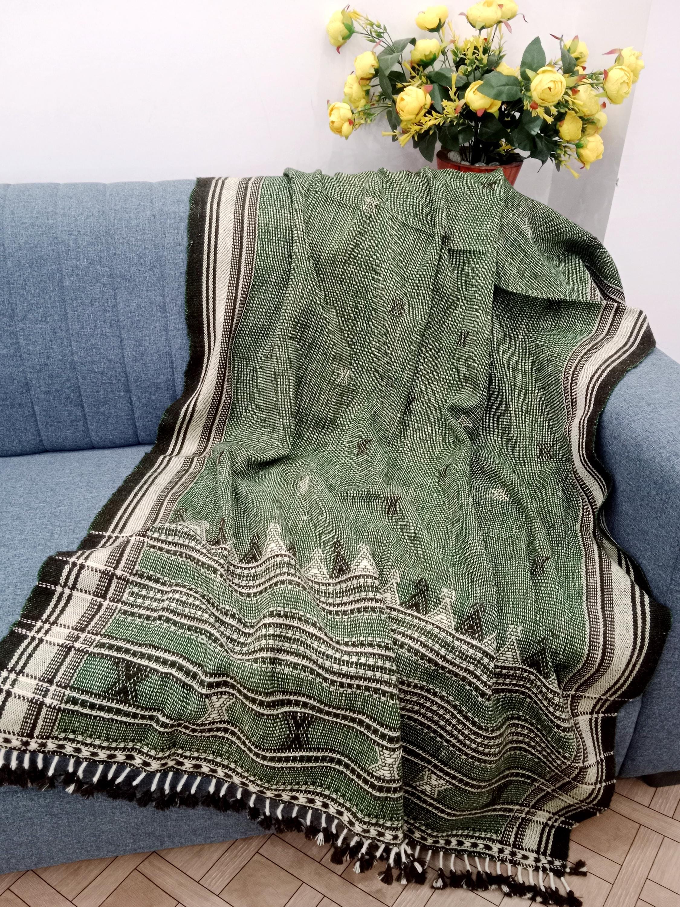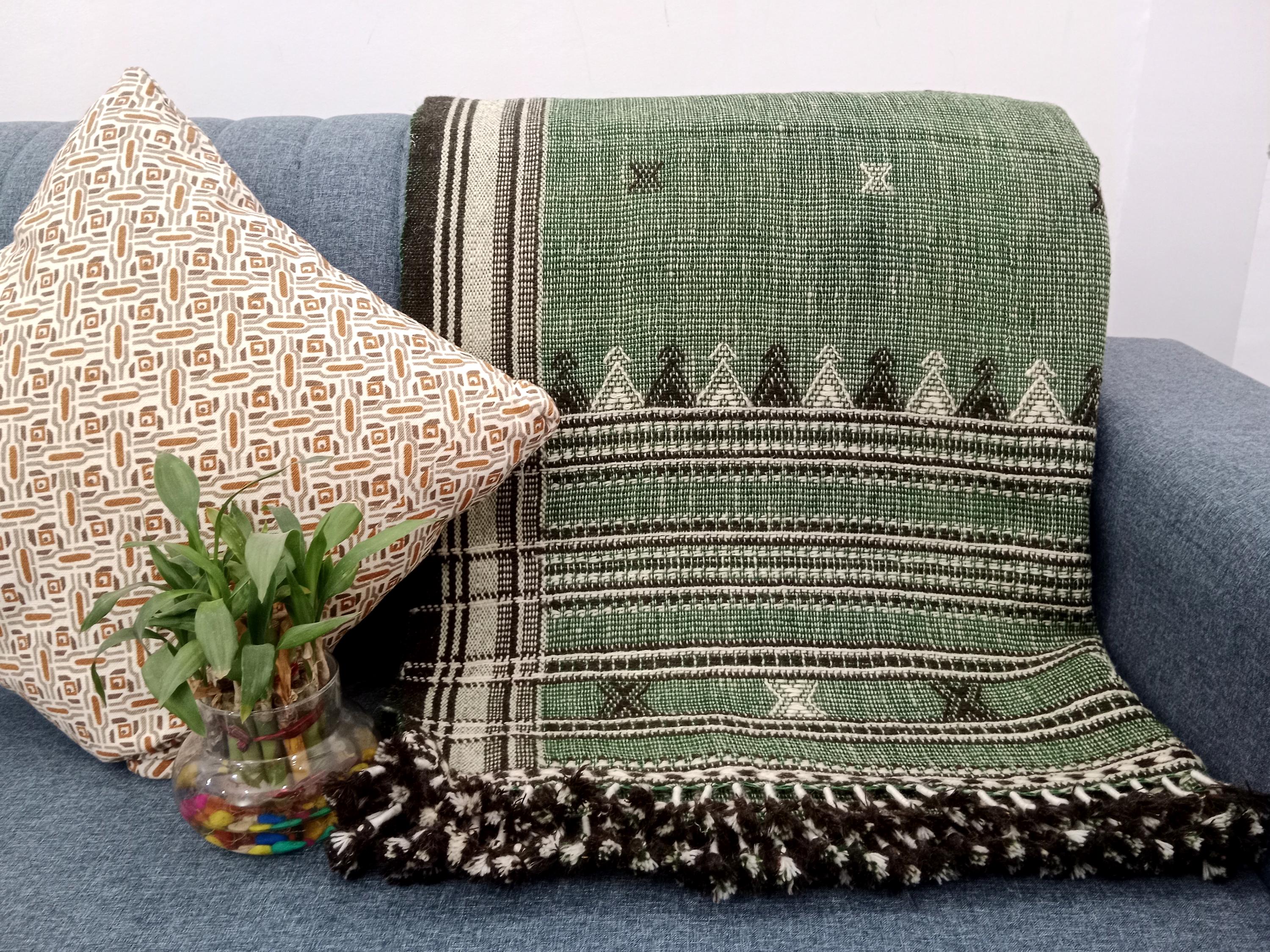 👉Beautiful Handloomed Indian Wool Throw Blanket. 100 % Naturally Dyed Wool featuring a subtle geometric pattern with classic stripes to add detail and texture. The pattern and color will vary slightly due to the handmade nature of the product. Throw Over Your Arm While Siting on Your Couch Or Use it as a decorative Piece at the end of your Bed