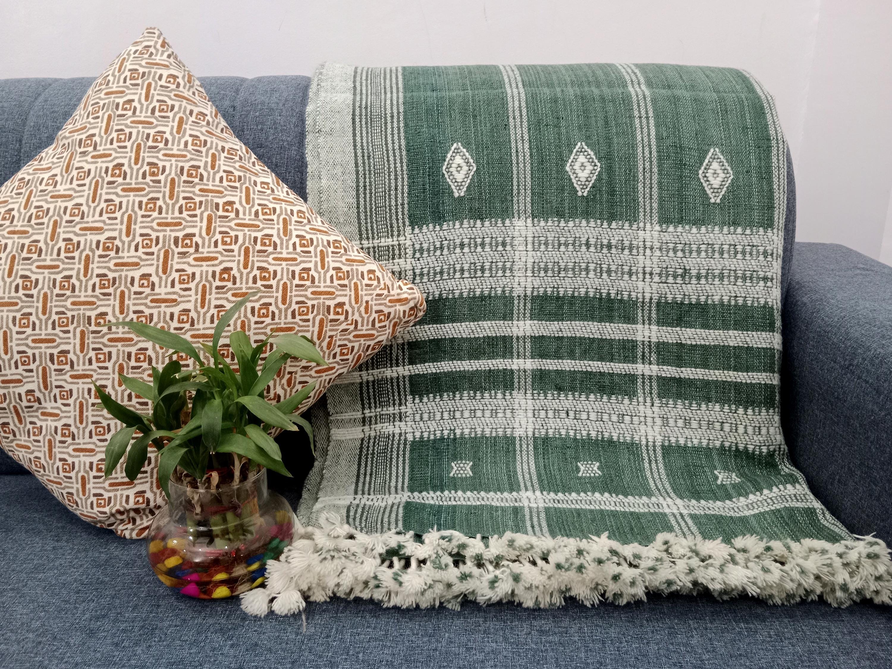 👉Beautiful Handloomed Indian Wool Throw Blanket. 100 % Naturally Dyed Wool featuring a subtle geometric pattern with classic stripes to add detail and texture. The pattern and color will vary slightly due to the handmade nature of the product. Throw Over Your Arm While Siting on Your Couch Or Use it as a decorative Piece at the end of your Bed