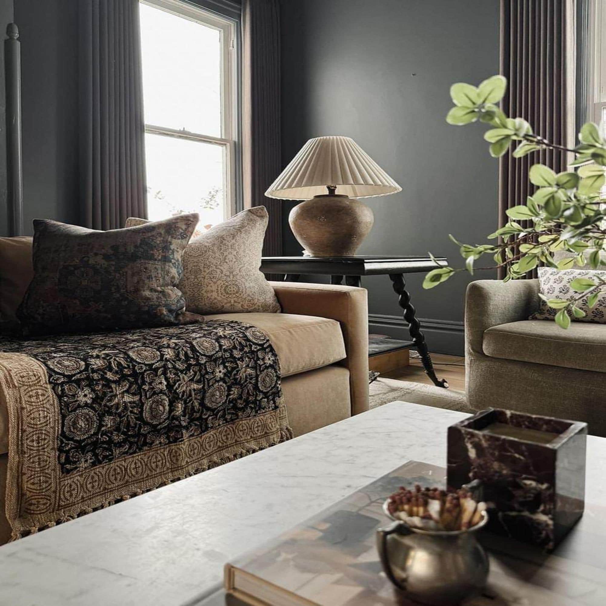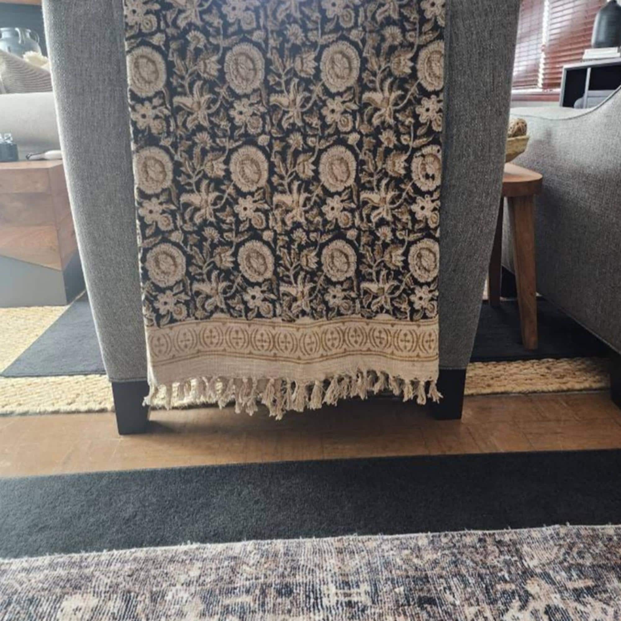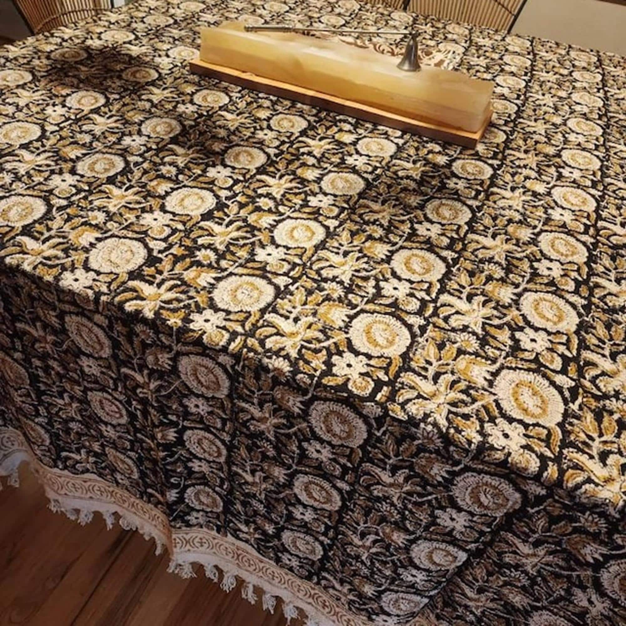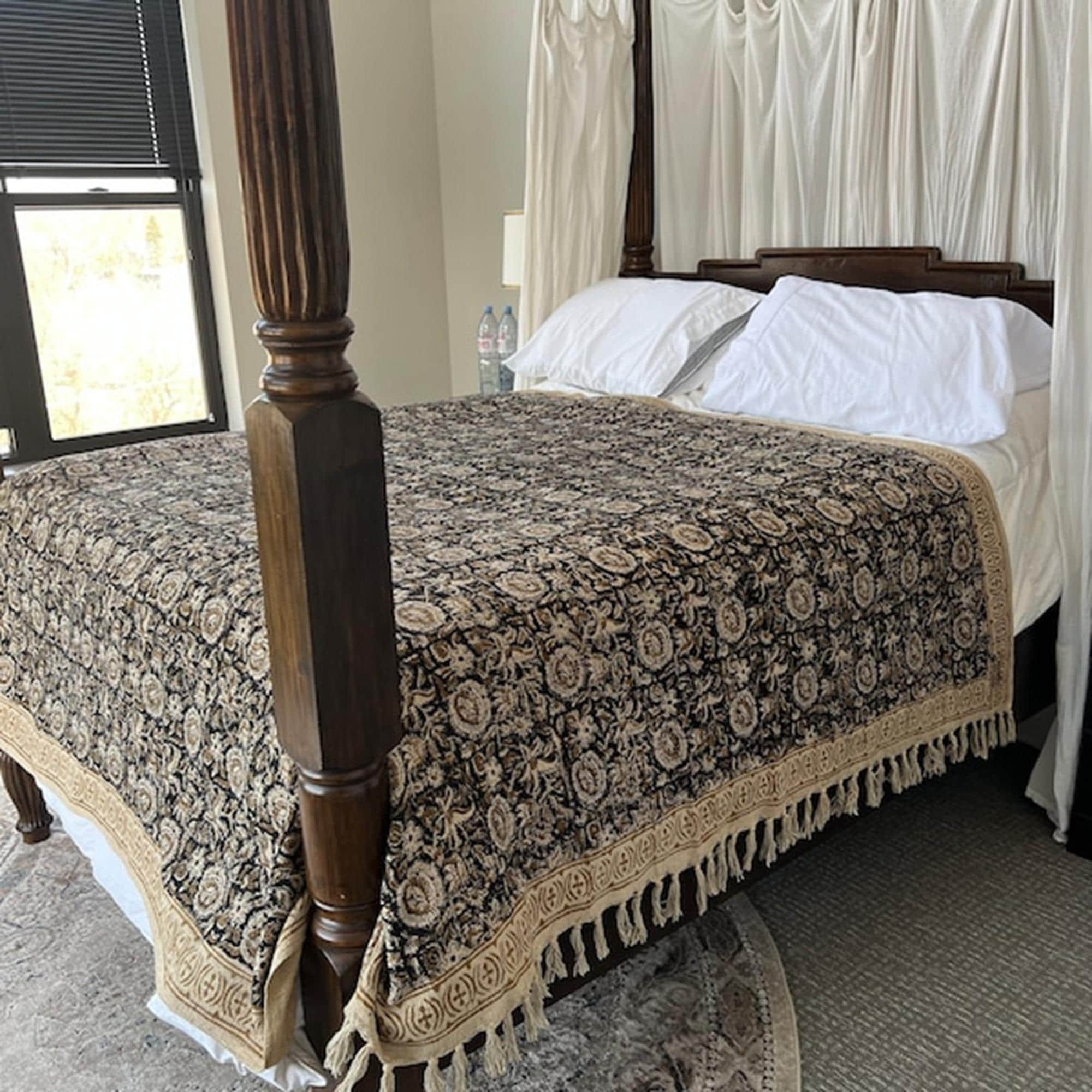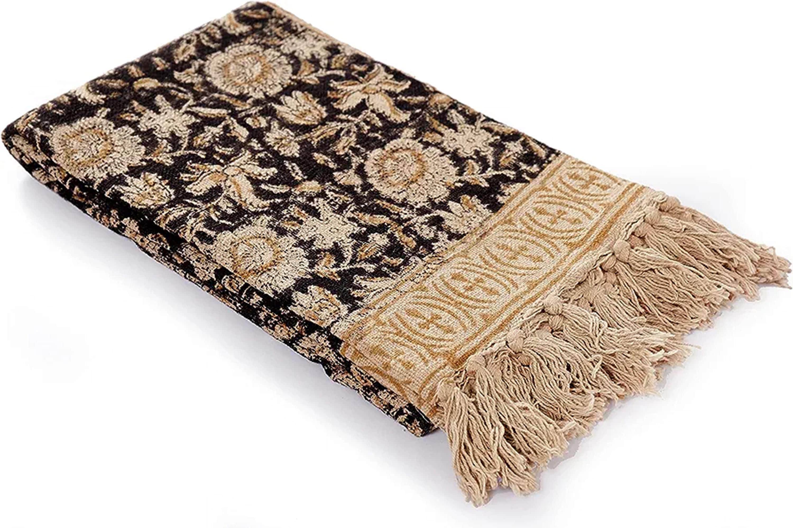 Handmade Block Print Cotton Throw Blanket, Boho Sofa Decor with Tassels